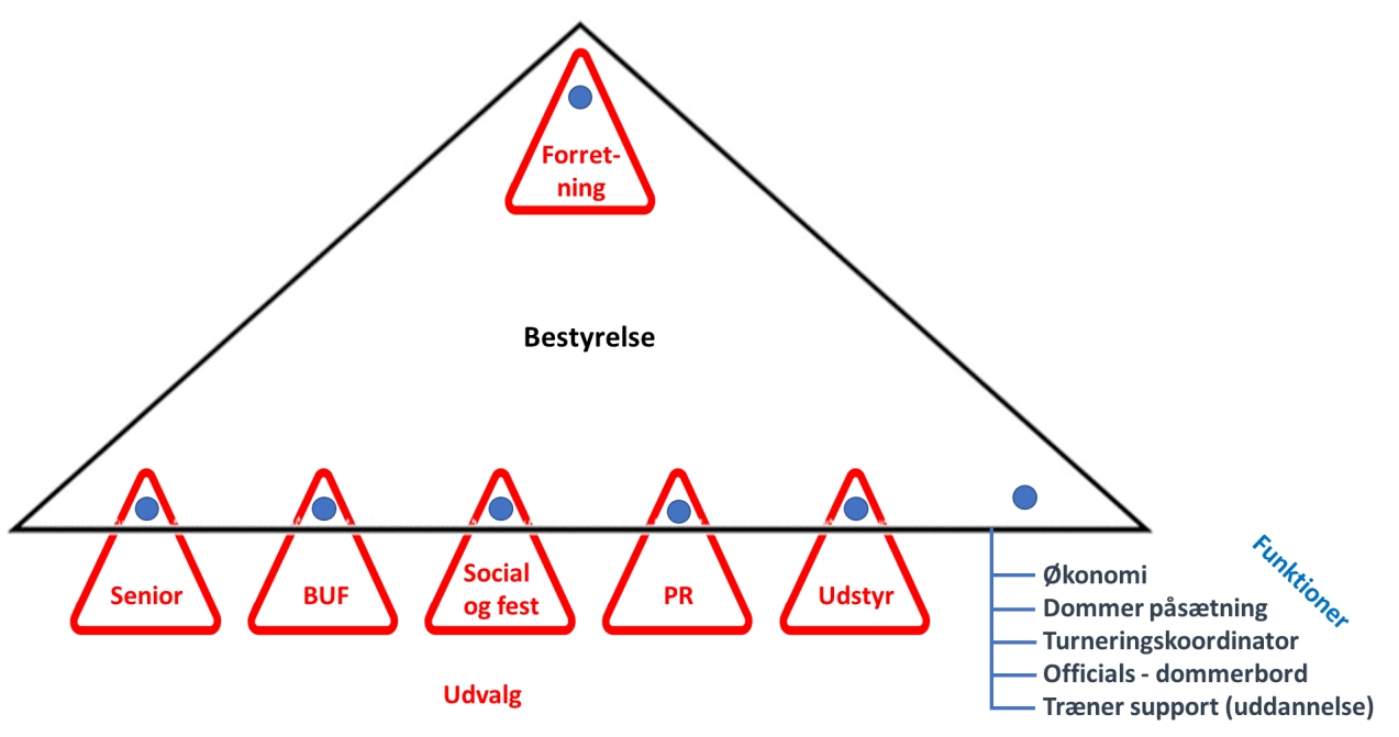 Klubbens bestyrelse tegner klubben overordnede retning og beslutter, hvordan klubbens midler disponeres i forhold til vision og mission (se nederst). Bestyrelsen har defineret en række funktioner og udvalg, som forestår sine aktiviteter indenfor de rammer, der er aftalt mellem bestyrelsen og det enkelte udvalg.